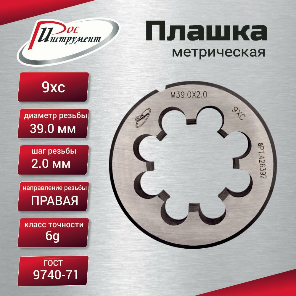 Купить Плашка М 39х2,0 ГОСТ 9740-71 9ХС