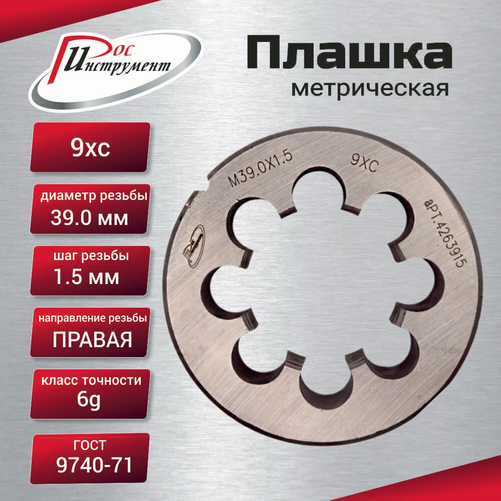Купить Плашка М 39х1,5 ГОСТ 9740-71 9ХС