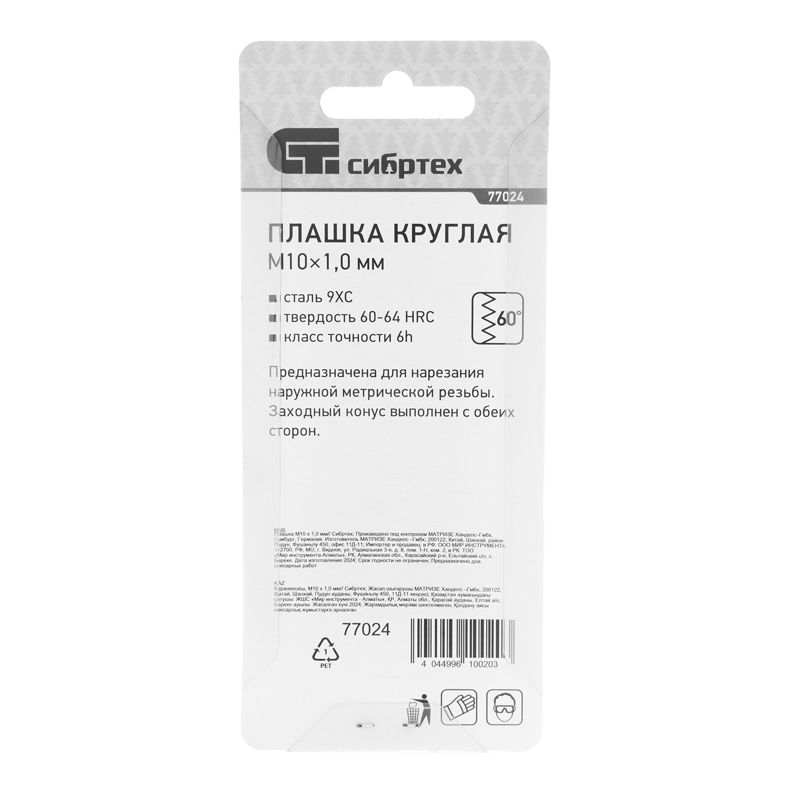 Купить Плашка Сибртех М10 х 1,0 мм 77024