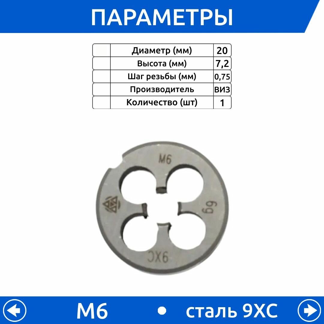 Купить Плашка М6 шаг 0,75 9ХС ВИЗ, 1 шт
