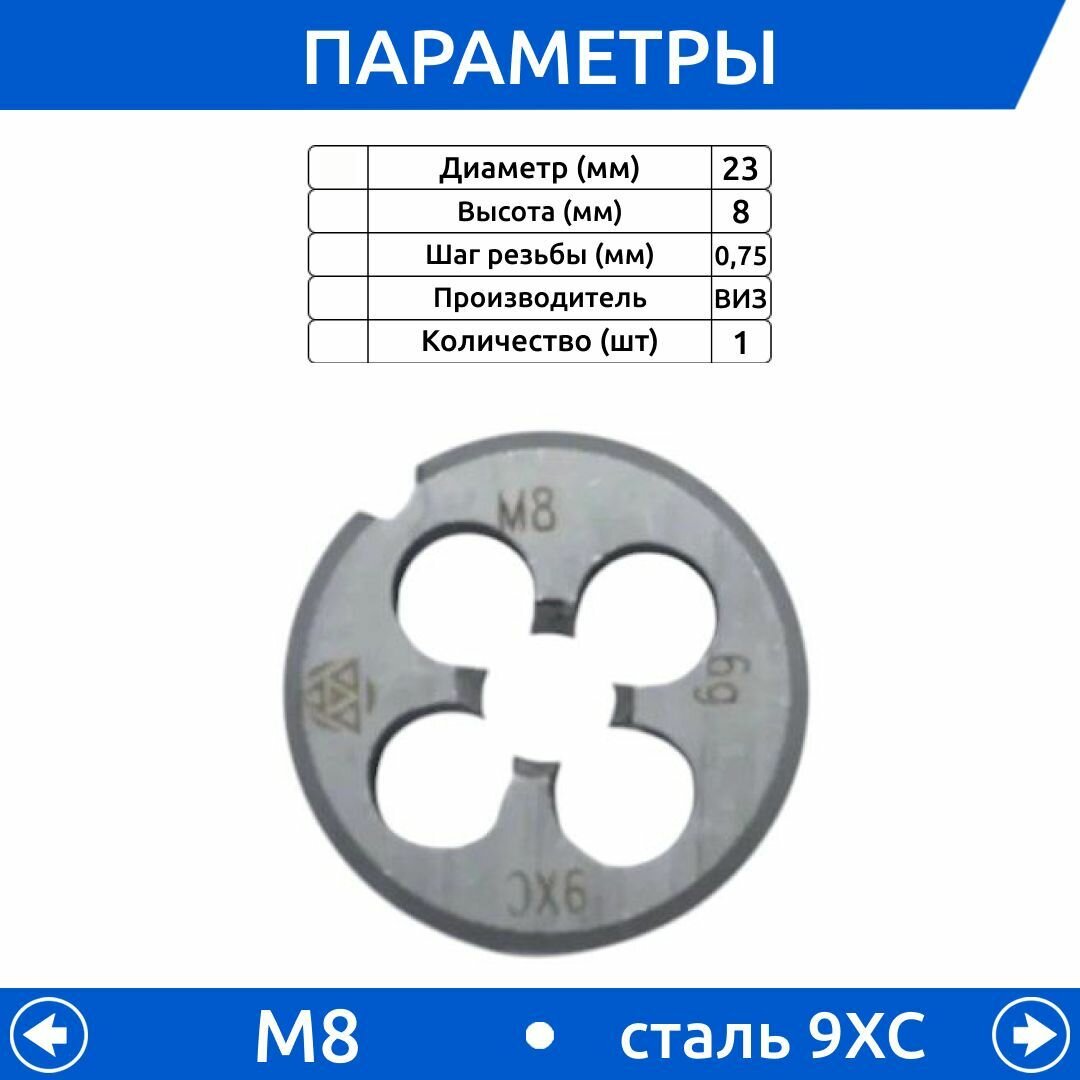 Купить Плашка М8 шаг 0,75 9ХС ВИЗ, 1 шт