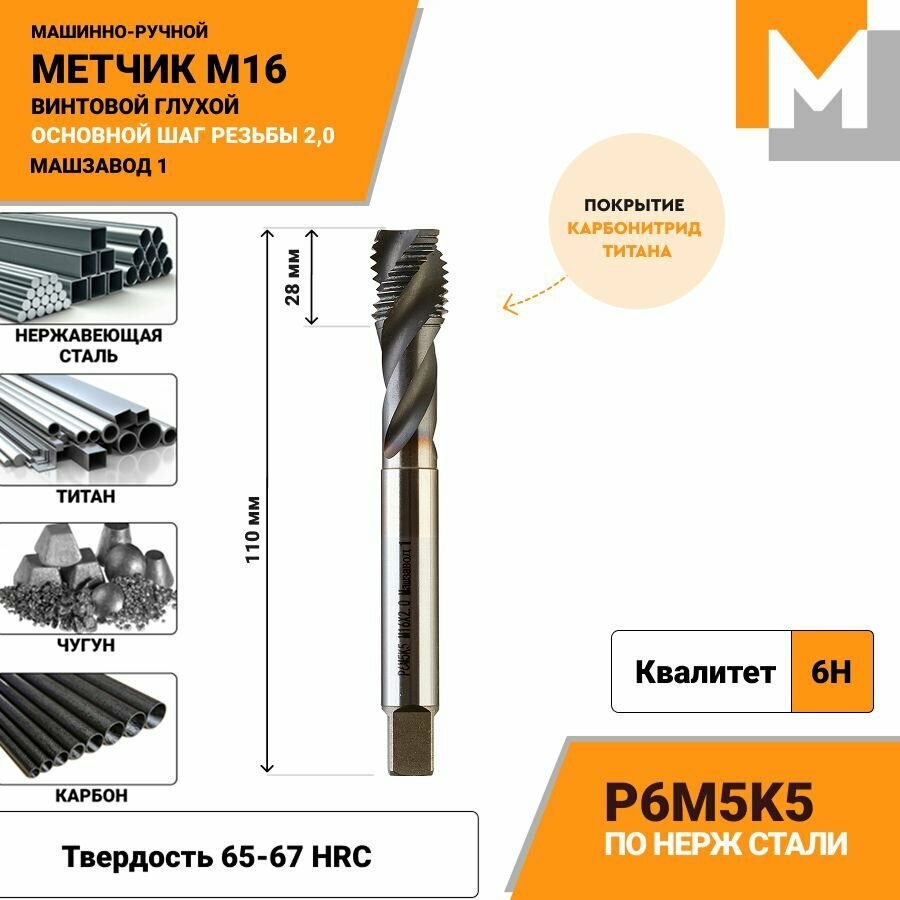 Метчик М16 винтовой Р6М5К5 кобальтовый интересное: