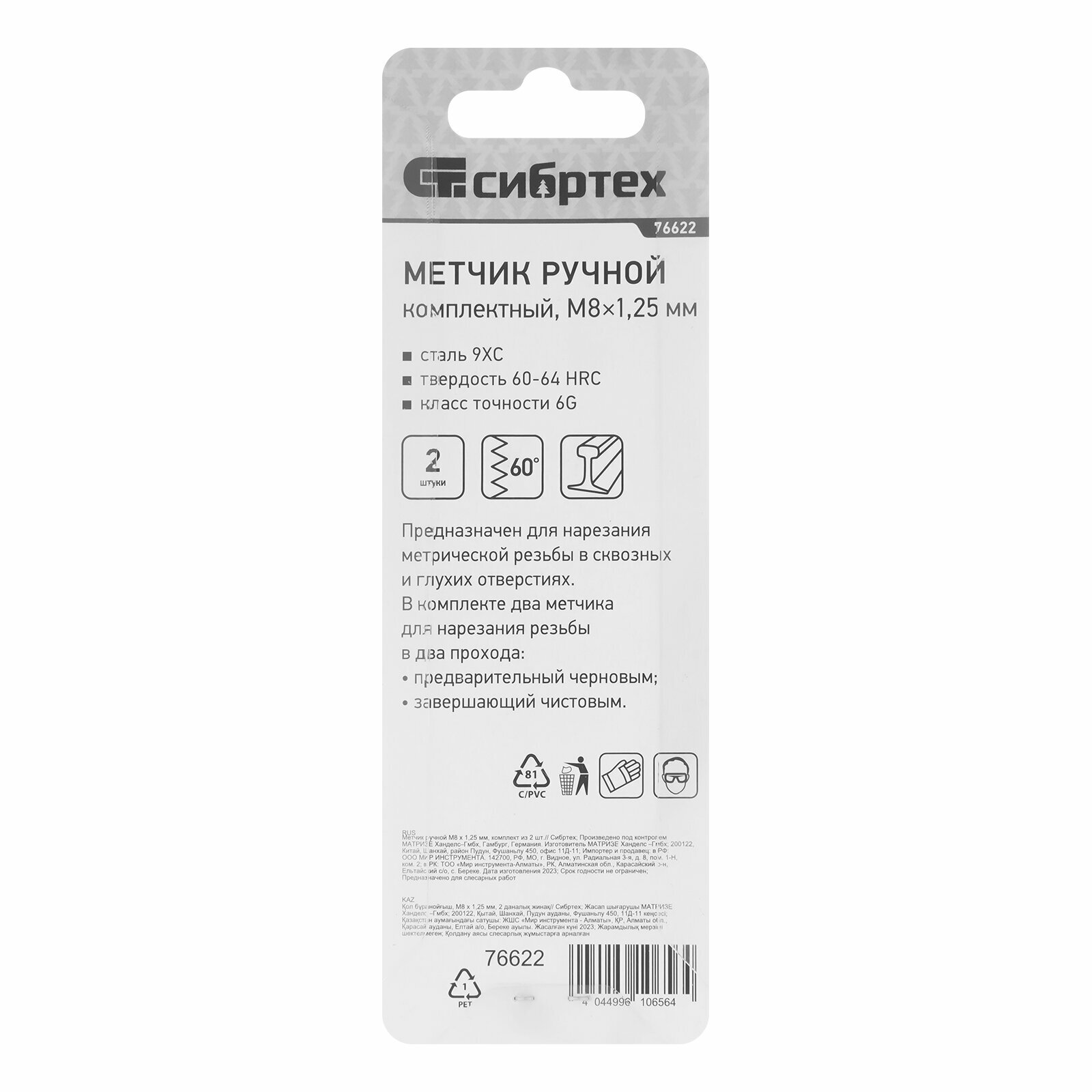 Купить Метчик ручной Сибртех М8 х 1,25 мм, комплект из 2 шт 76622