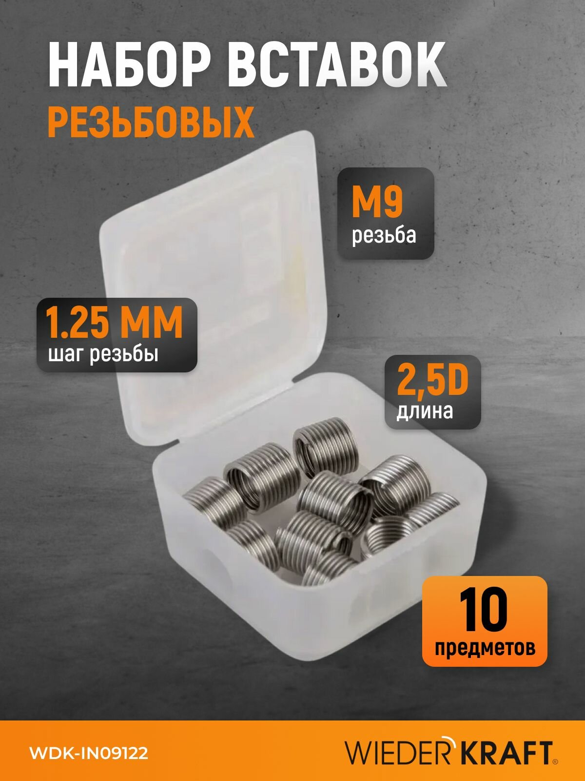 Купить Набор вставок резьбовых M9x1.25, 2,5d, 10 предметов WIEDERKRAFT WDK-IN09122