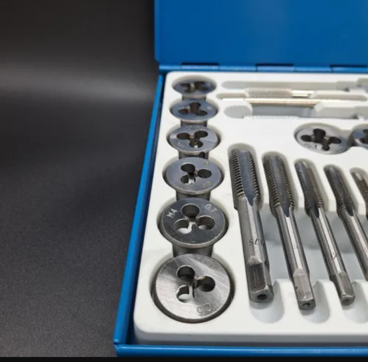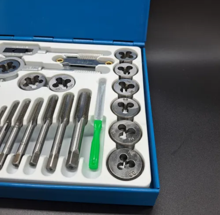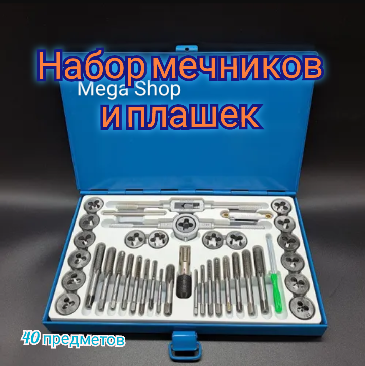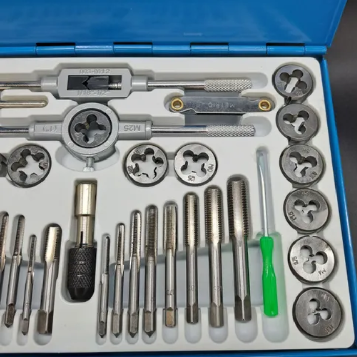 Набор метчиков и плашек по металлу, 40 предметов в металлическом кейсе интересное: