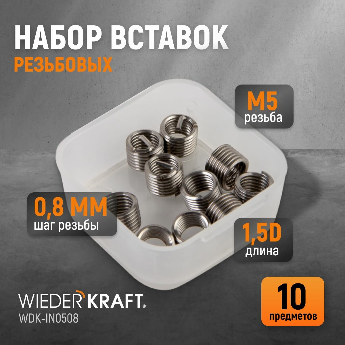Купить Набор вставок резьбовых M5X0,8, 1,5d, 10 предметов WIEDERKRAFT WDK-IN0508
