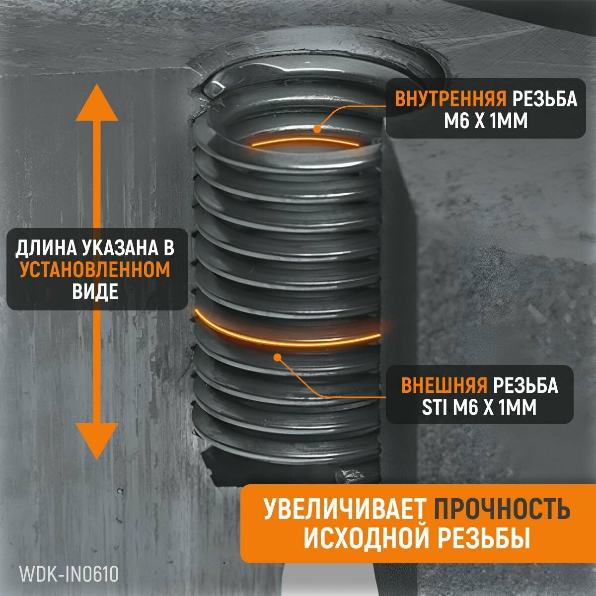 Купить Набор вставок резьбовых M6X1,0, 1,5d, 10 предметов WIEDERKRAFT WDK-IN0610