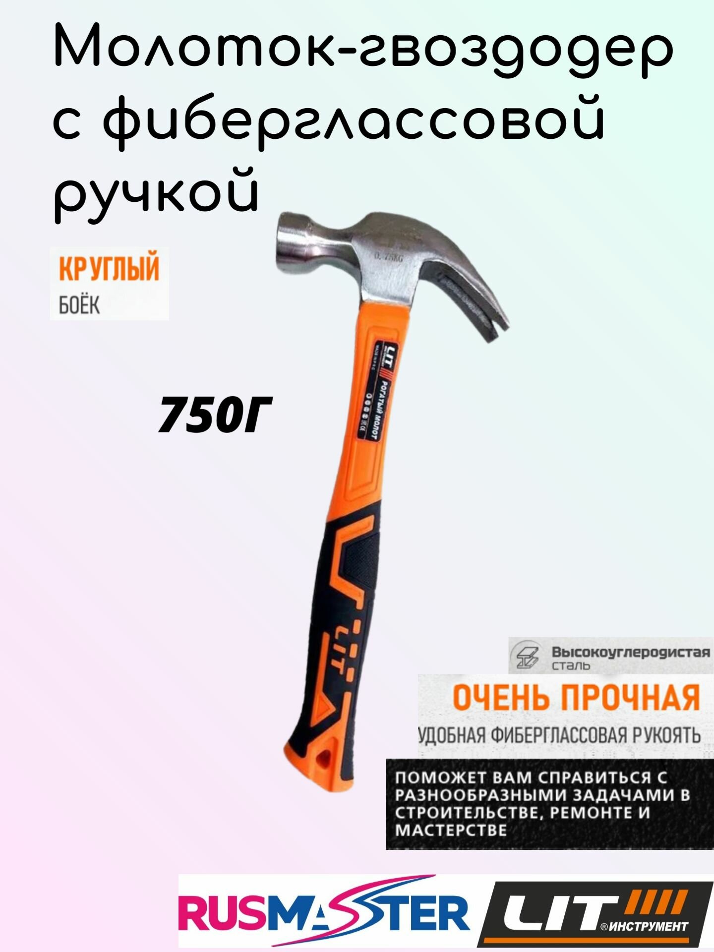 Молоток-гвоздодер с фиберглассовой ручкой кованый 750гр. LIT 56095 интересное: