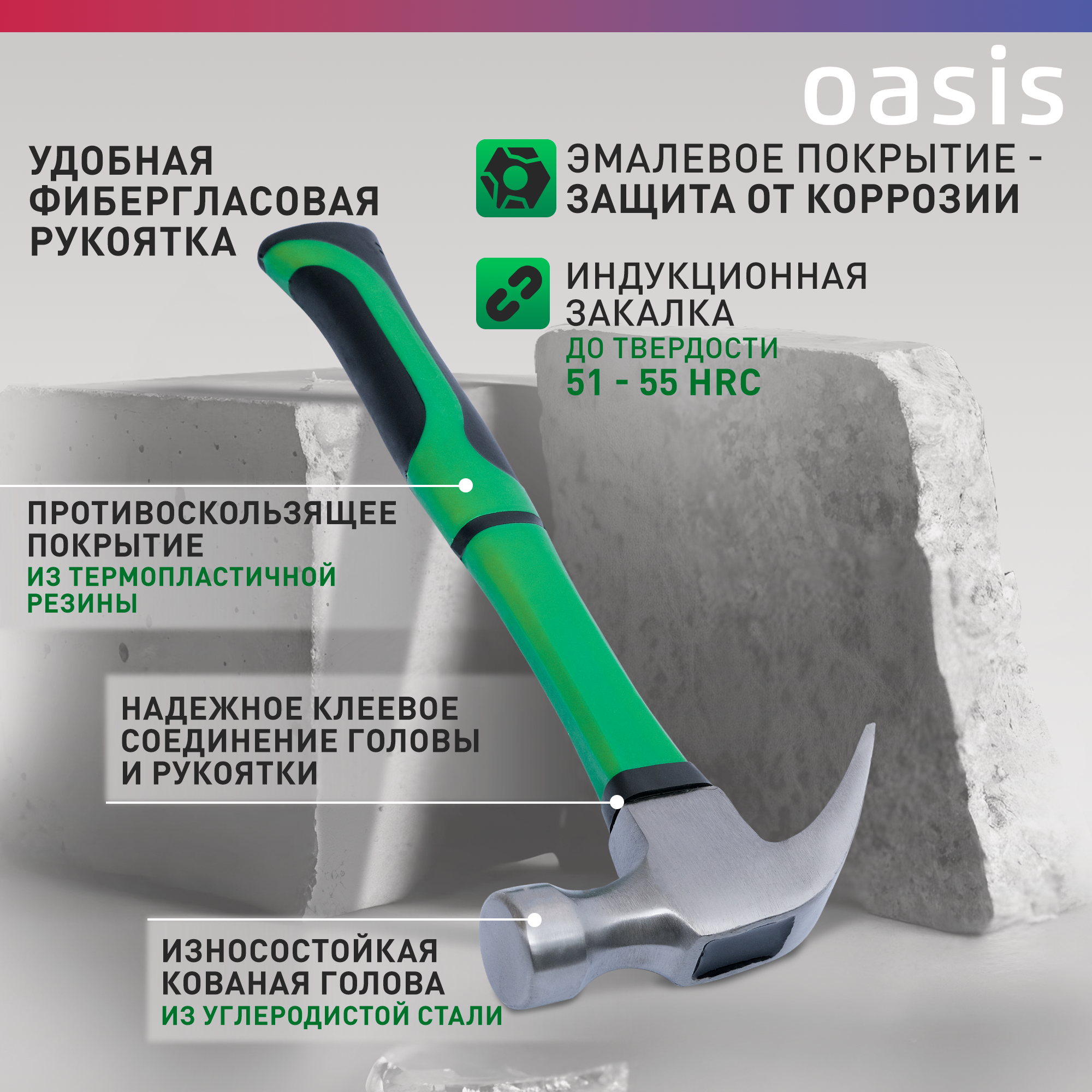 Молоток-гвоздодер с обрезиненной фибергласовой рукояткой Oasis Eco 450 г 103010704002 интересное: