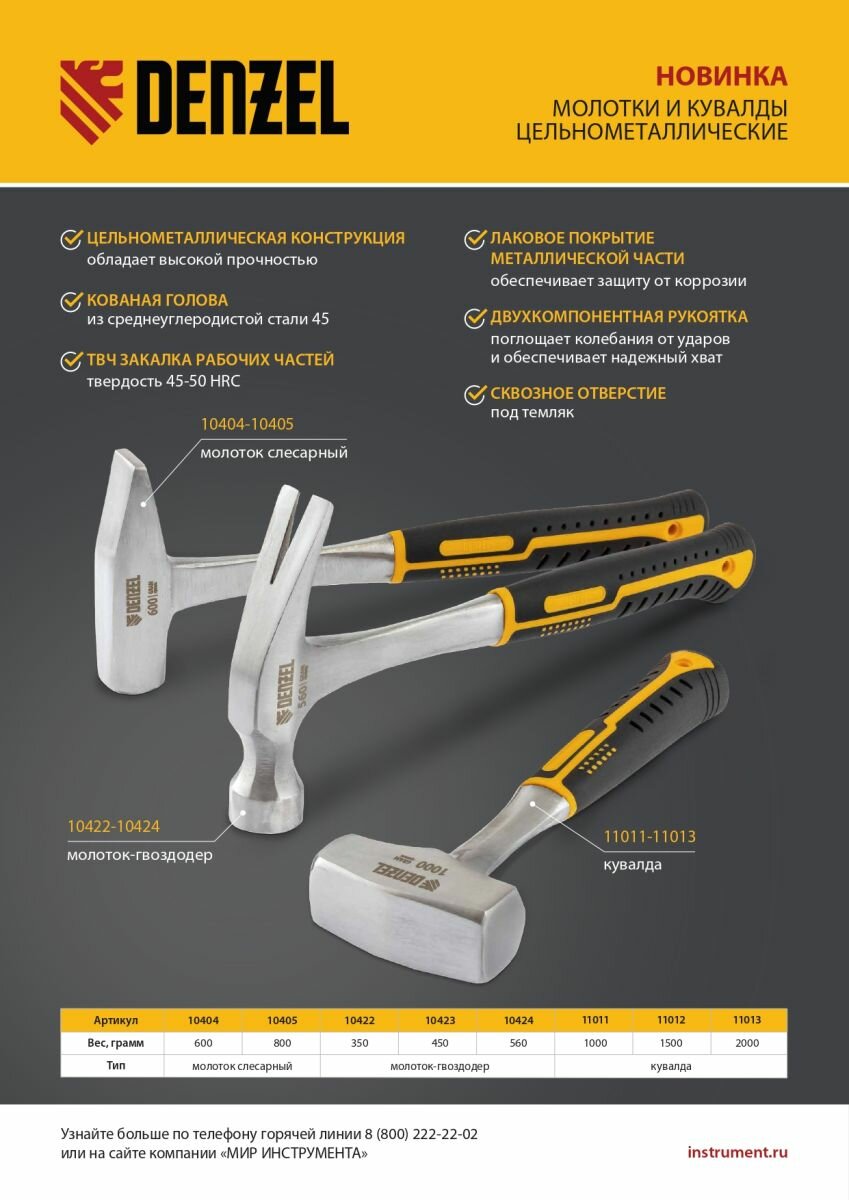 Кувалда 1 кг, цельнометаллическая, двухкомпонентная рукоятка Denzel интересное:
