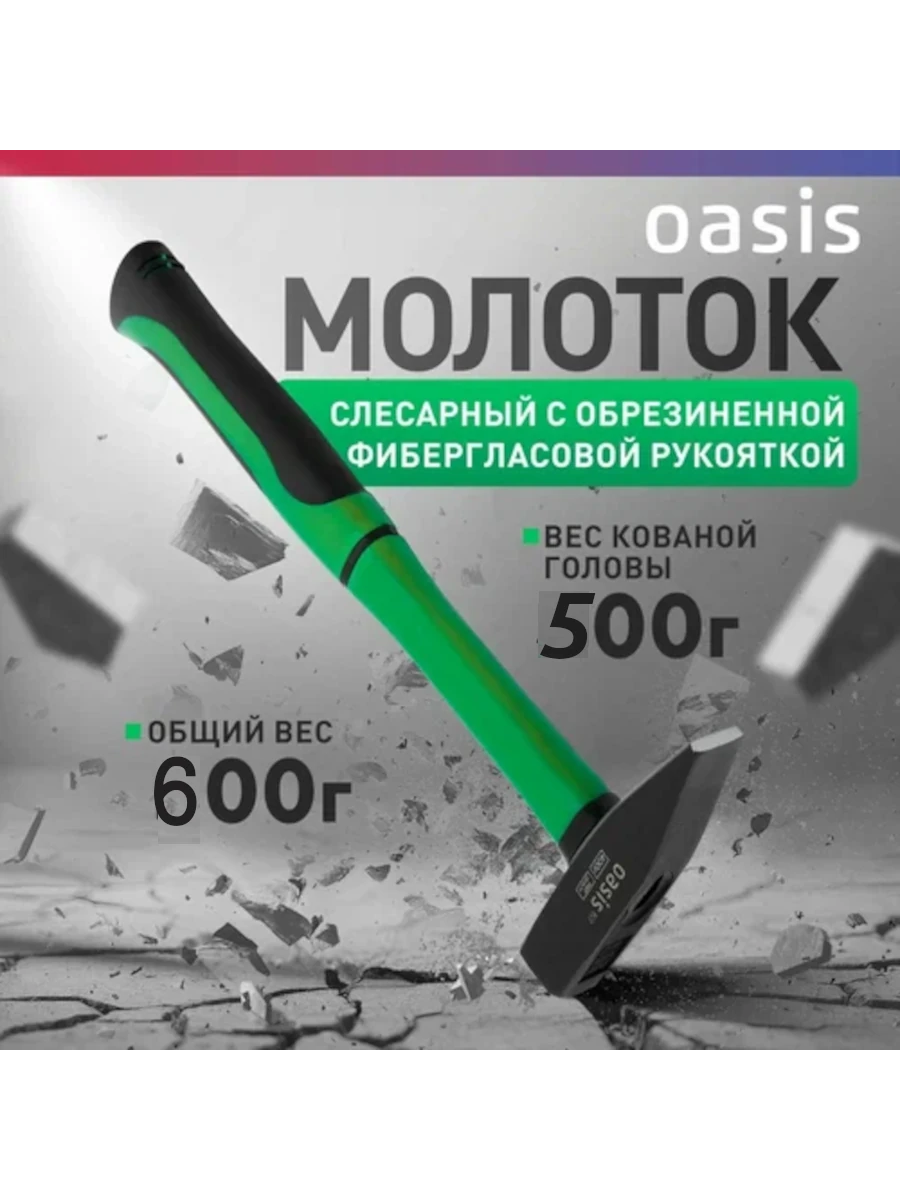 Молоток слесарный с обрезиненной фибергласовой рукояткой OASIS Eco 500 г интересное: