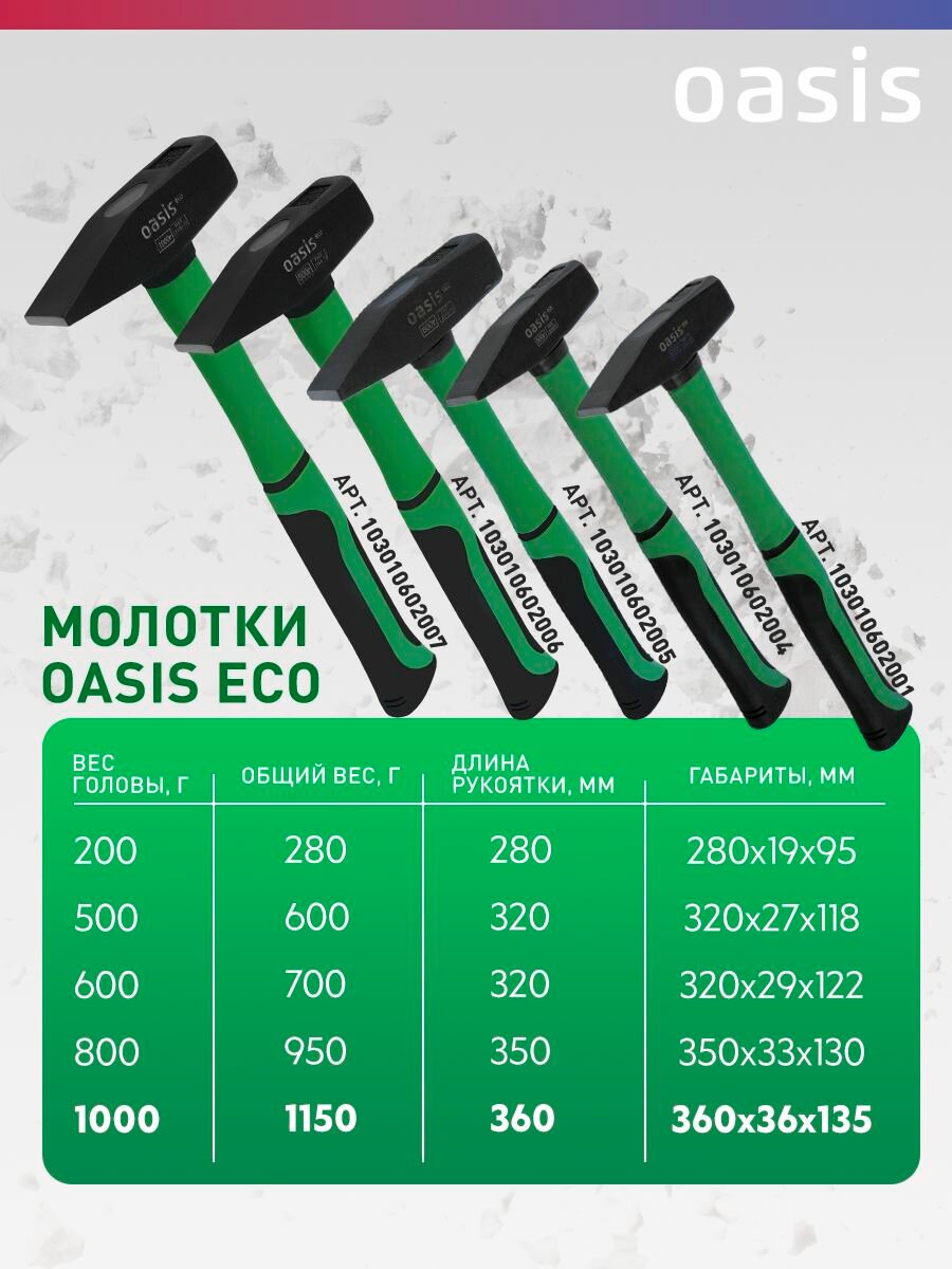 Молоток слесарный с обрезиненной фибергласовой рукояткой Oasis Eco 1000 г_103010602007 интересное: