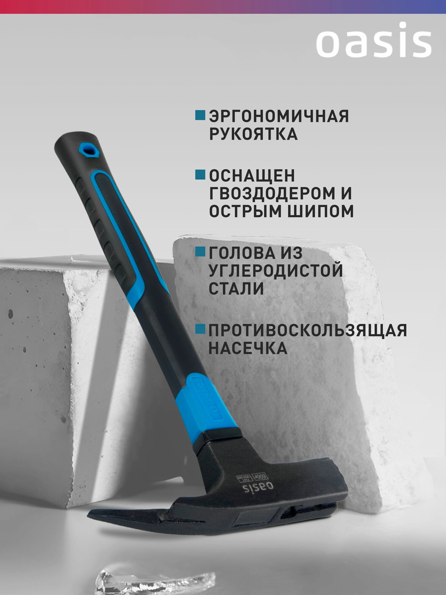 Молоток-кровельщика с обрезиненной фибергласовой рукояткой Oasis 600 г 103010702002 интересное: