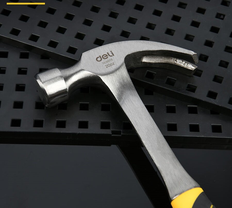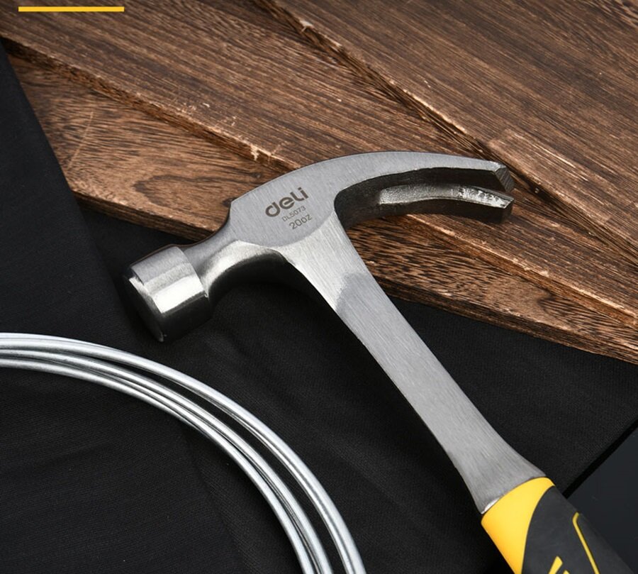 Молоток-гвоздодер цельнокованный 550гр Deli DL5073 (прорезиненная рукоять, круглый боек) интересное: