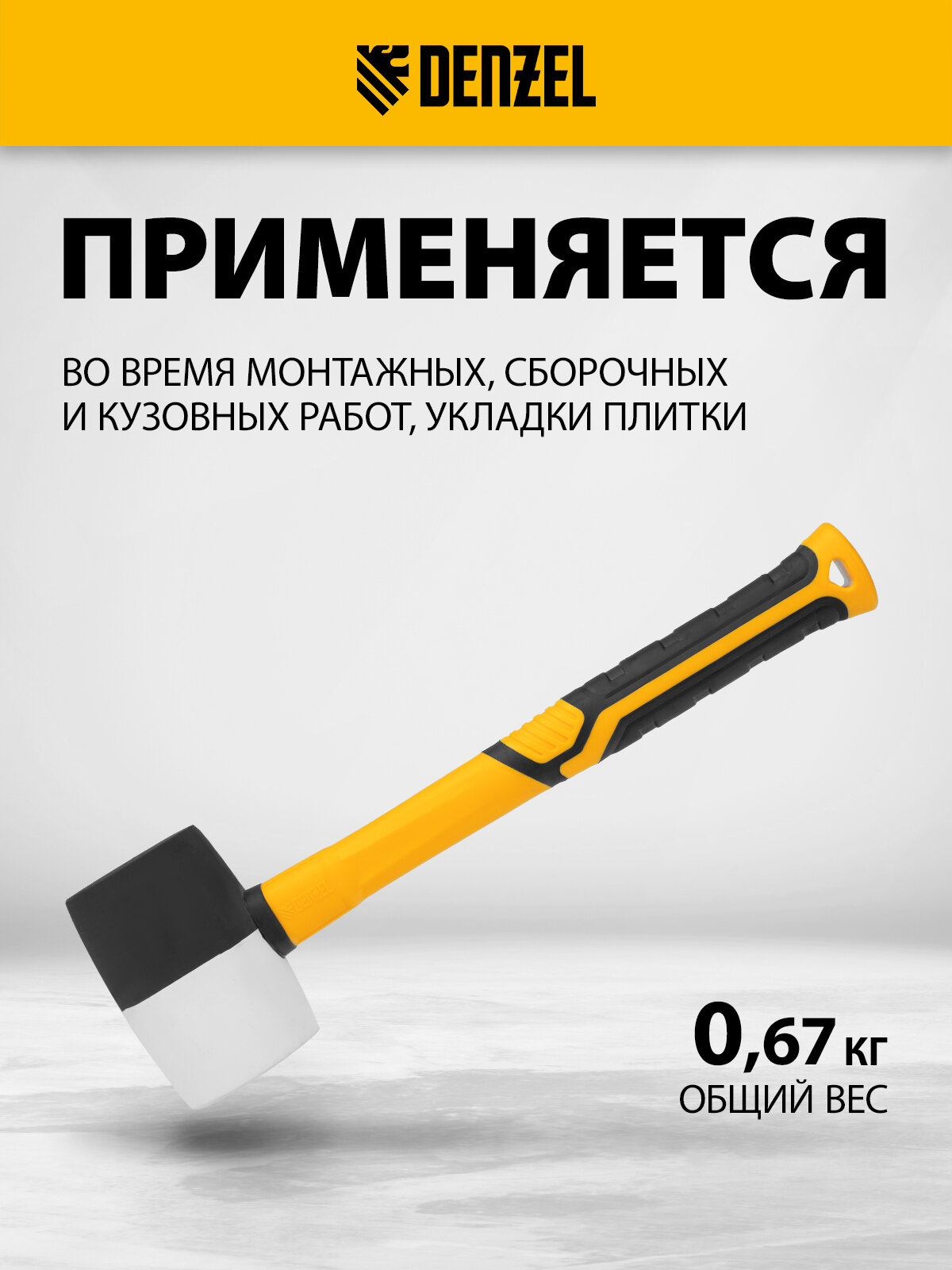 Киянка резиновая Denzel 450 г, черно-белая, фибергласовая рукоятка c TPR покрытием 11102 интересное: