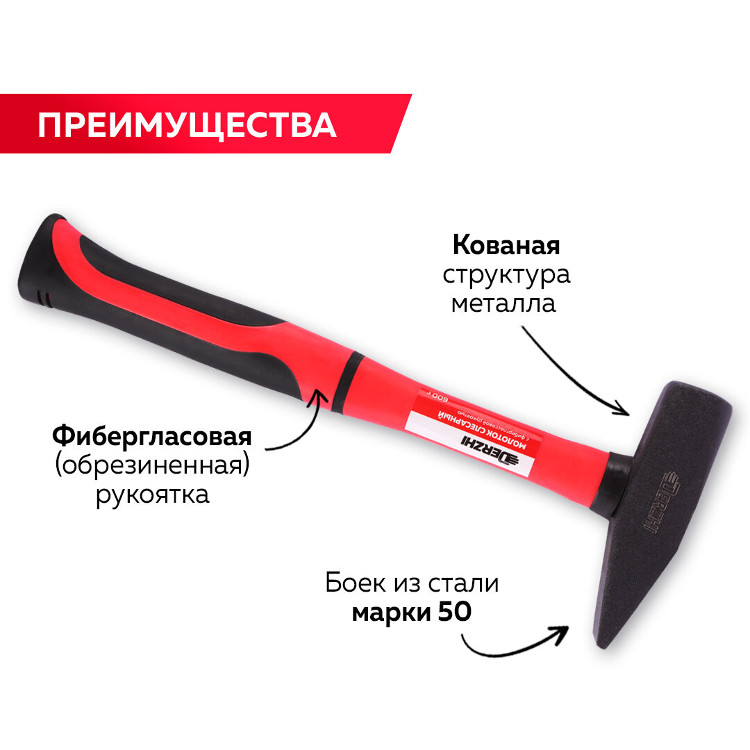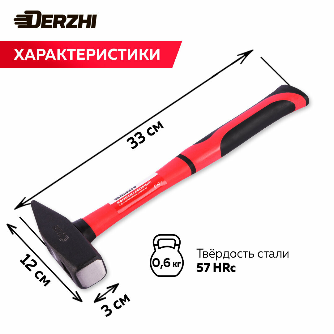 Молоток слесарный кованый с фиберглассовой рукояткой 600 г DERZHI интересное: