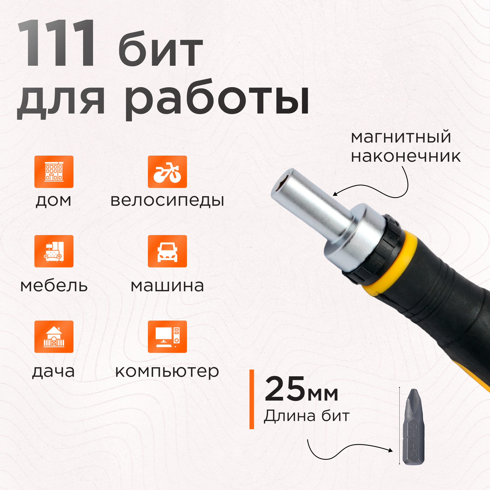 Отвертка с набором бит Cablexpert 115 предметов сталь CrV реверсивный механизм TK-SD-372 интересное: