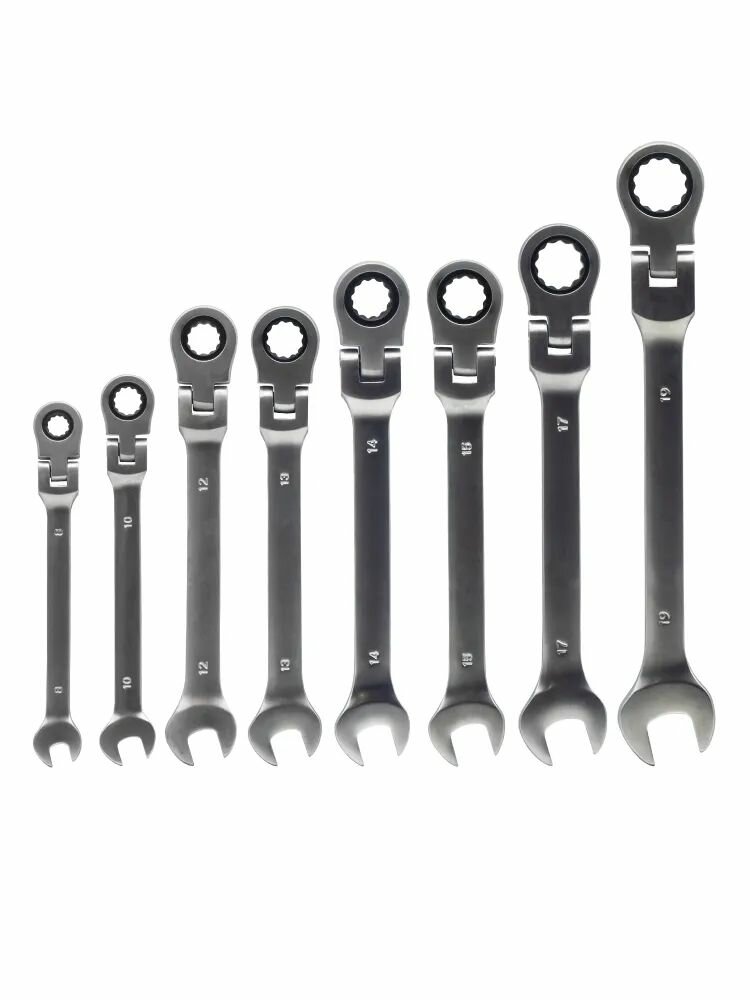 Купить Набор ключей комбинированных трещоточных с шарниром 8 предметов