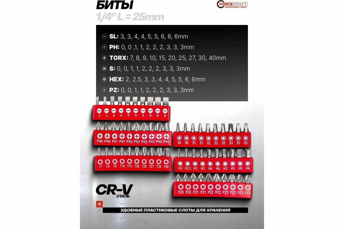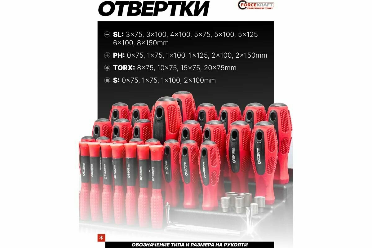 Набор отверток и бит FORCEKRAFT 100 предметов на стенде FK-10100 интересное: