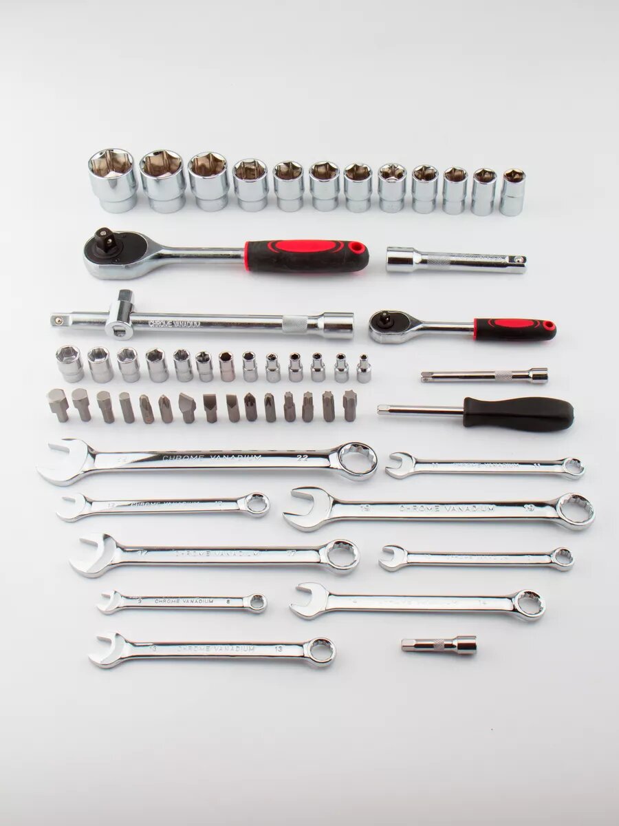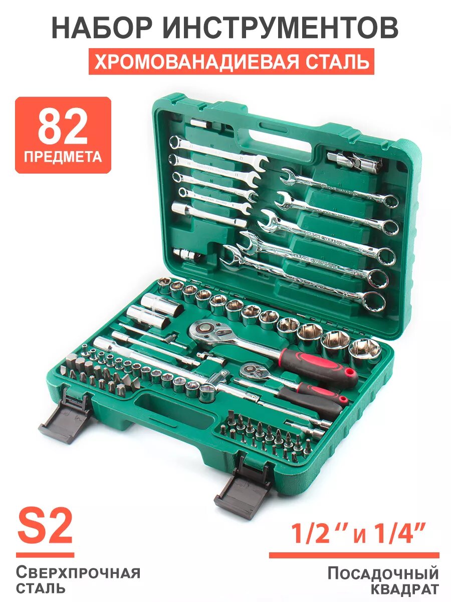Набор инструментов для автомобиля 82 предмета, хромованадиевая сталь, в кейсе интересное: