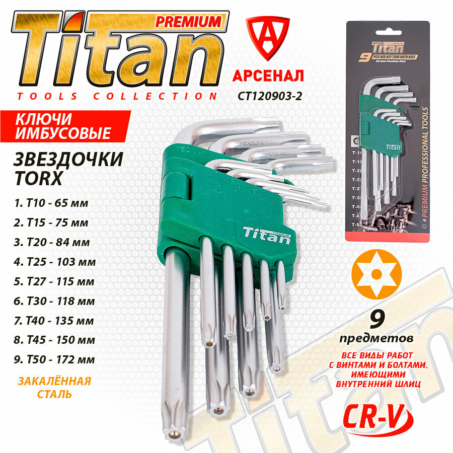 Набор шестигранников TITAN Premium 9 шт Torx (звёздочка) средний 170 мм (Т10-Т50), CT120903-2 интересное: