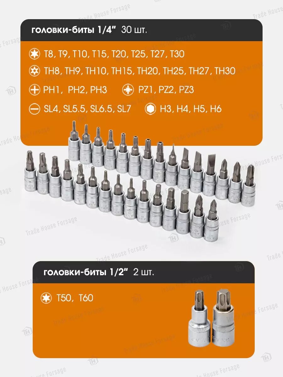 FORSTIME Набор инструментов 202пр. 1/4", 3/8", 1/2" (6гр.) FT-42022-5(56911)