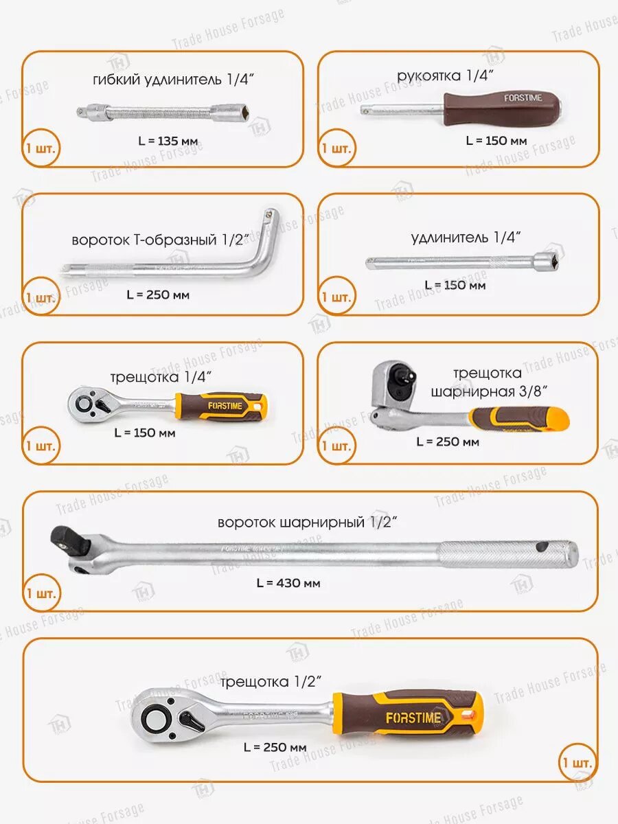 Набор инструментов FORSTIME 109 предметов, 1/4', 1/2', в кейсе