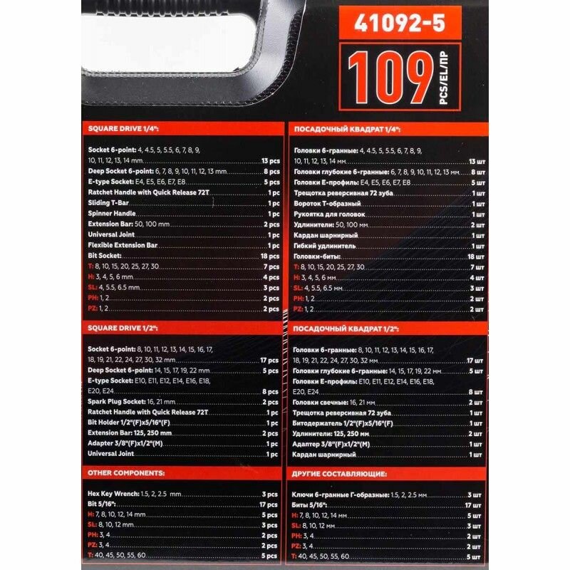 Набор инструментов BaumAuto, 109 предметов1/4', 1/2', в кейсе интересное: