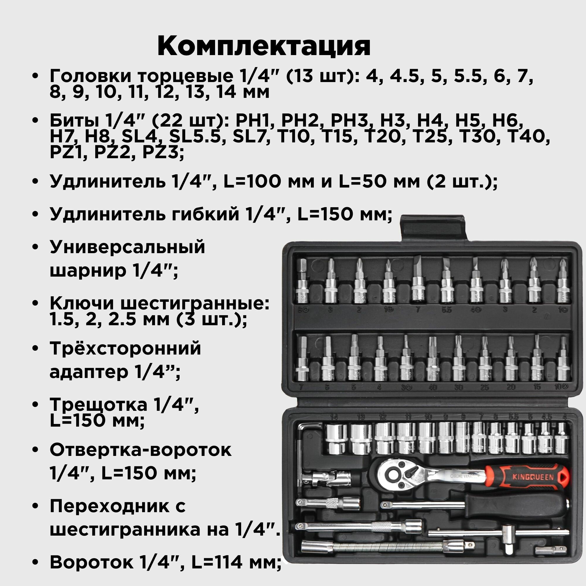 Набор инструментов KINGQUEEN, хромованадиевая сталь, 46 элементов, 72 зубца интересное:
