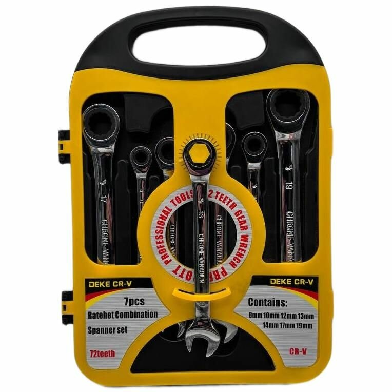 Купить Набор комбинированных трещоточных ключей 7шт, 8-19мм, Chrome-vanadium,