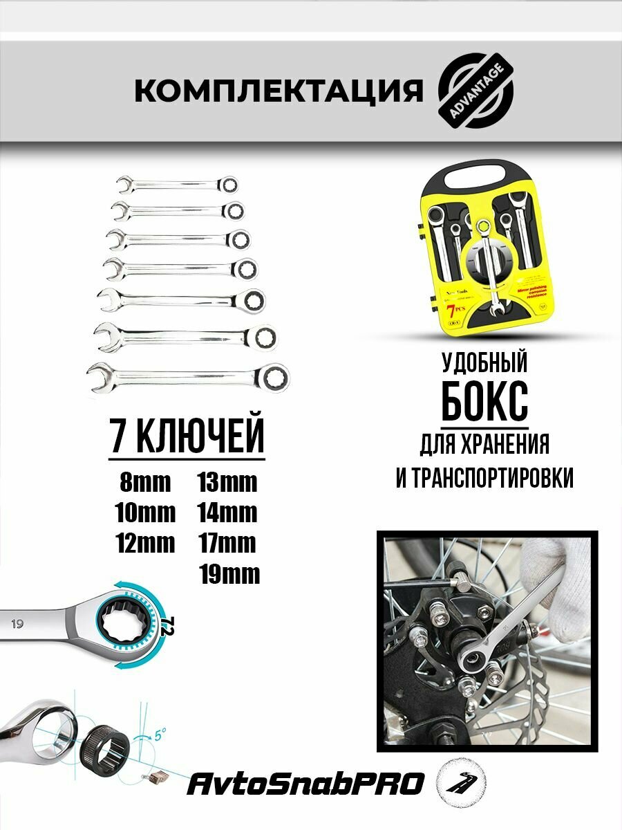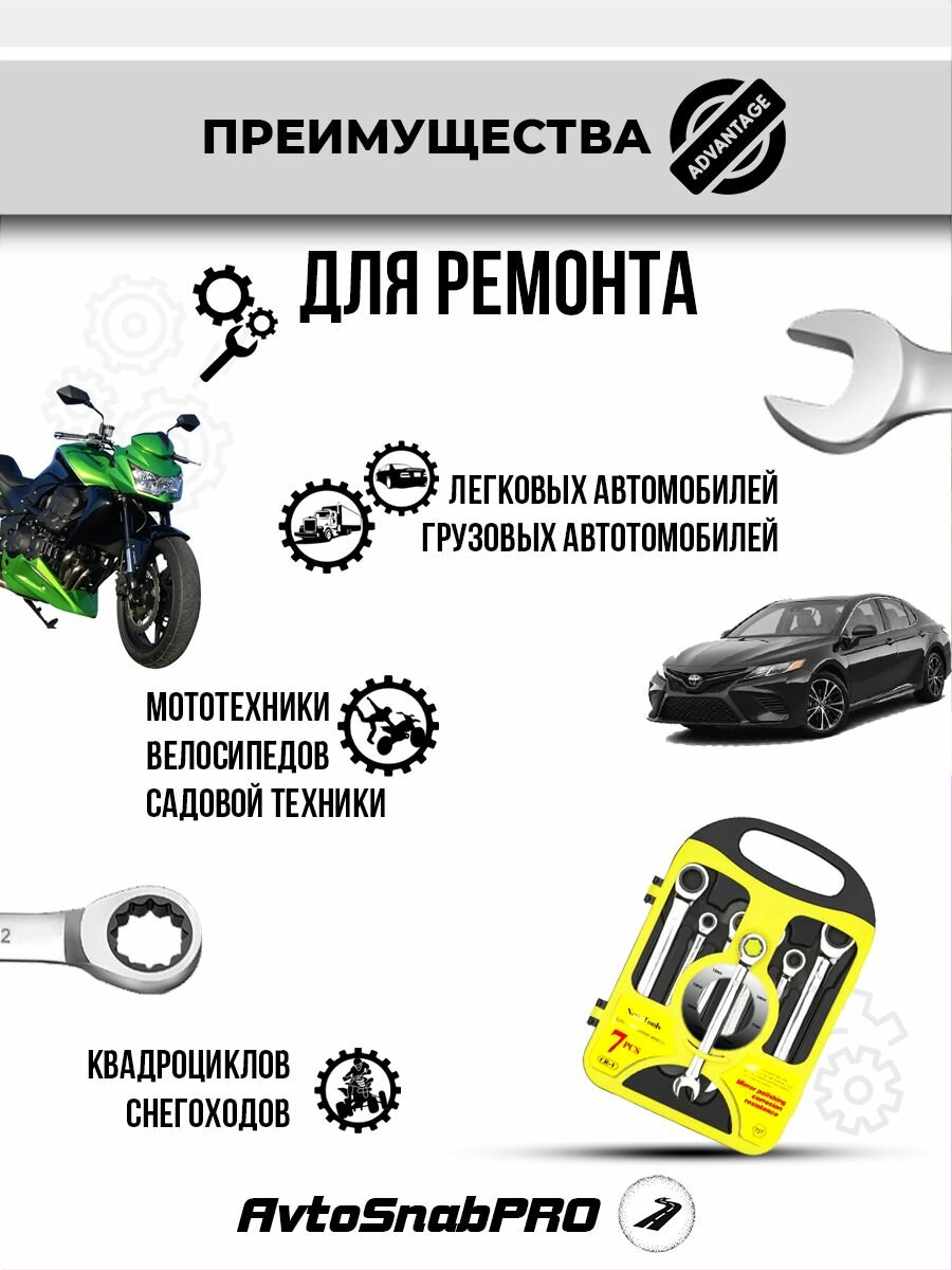 Набор инструментов ключей гаечных комбинированных трещоточных 7 предметов в кейсе интересное: