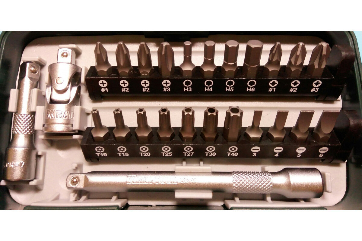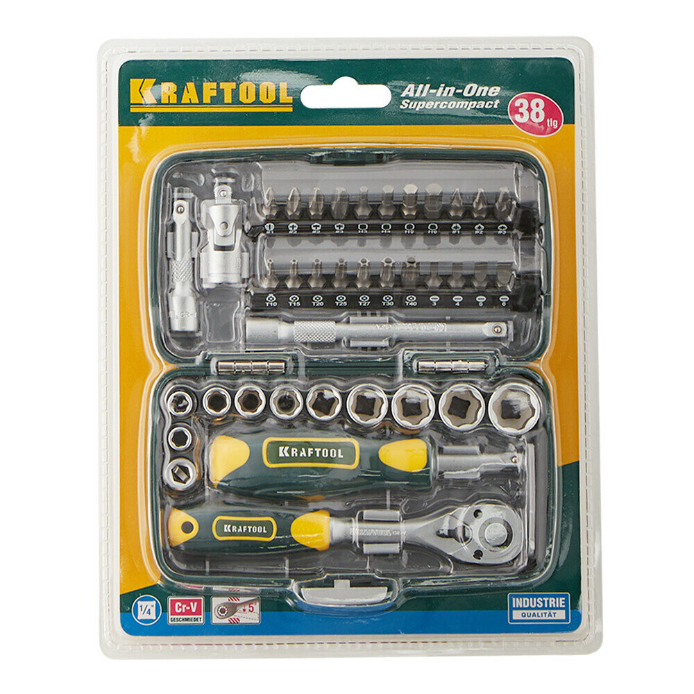 Набор бит и торцевых головок Kraftool 27970-H38, 38 предм, зеленый интересное: