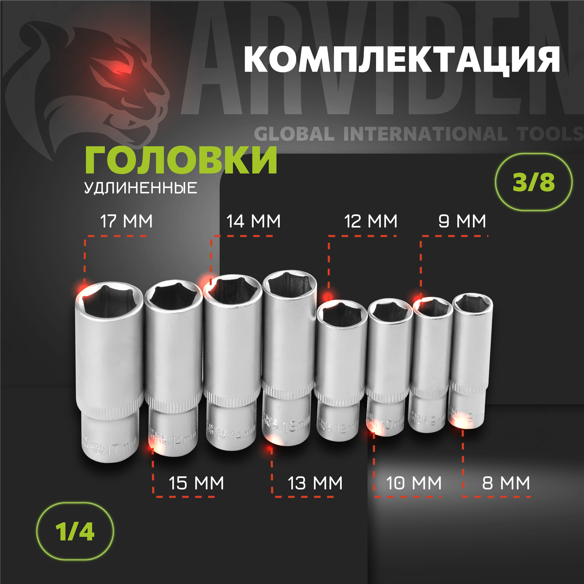 Набор инструментов ARVIDEN 1/2", 1/4", 3/8 121 предметов, CRV интересное: