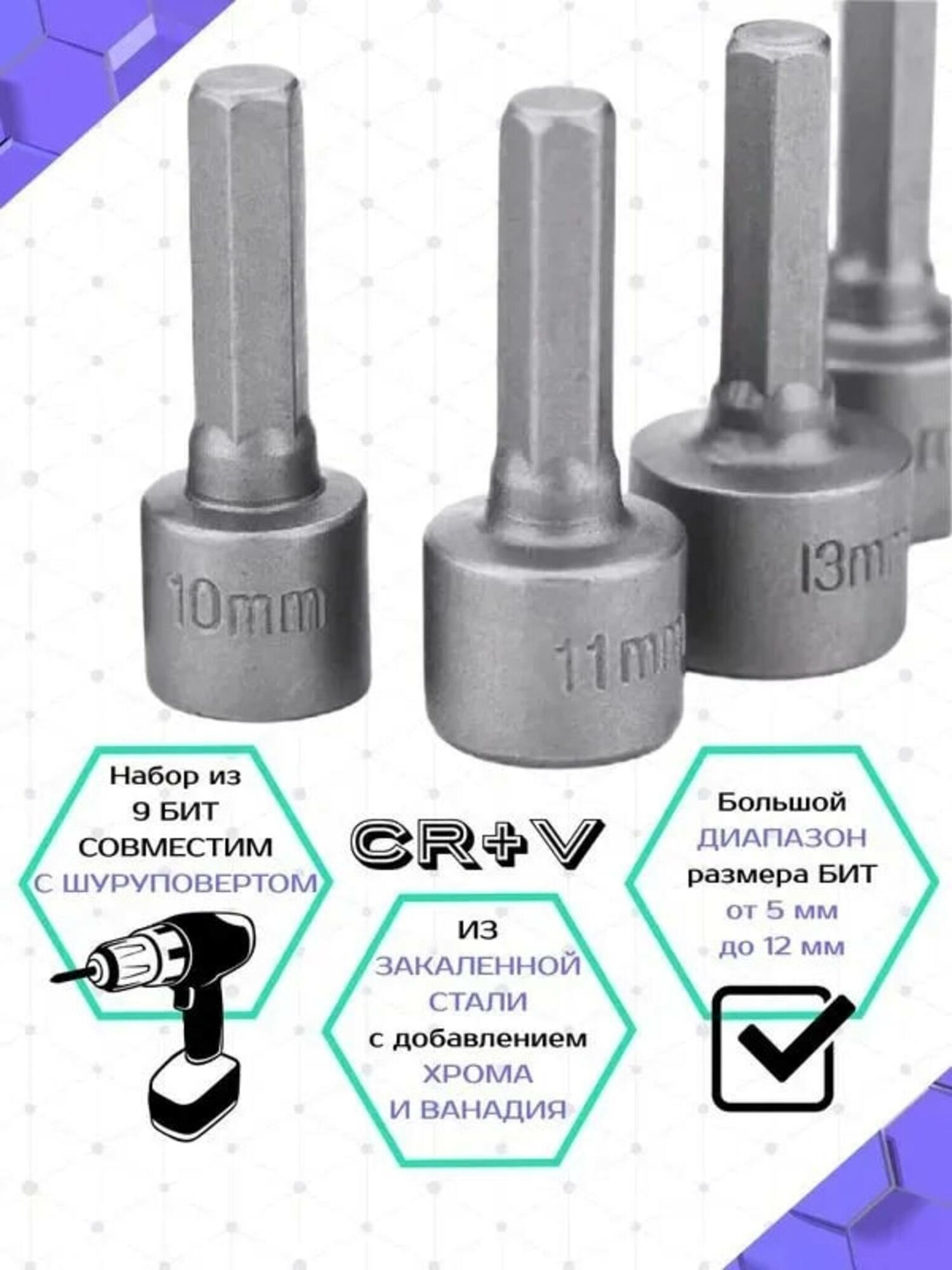 Набор торцевых шестигранных головок биты для шуруповерта 9 предметов интересное: