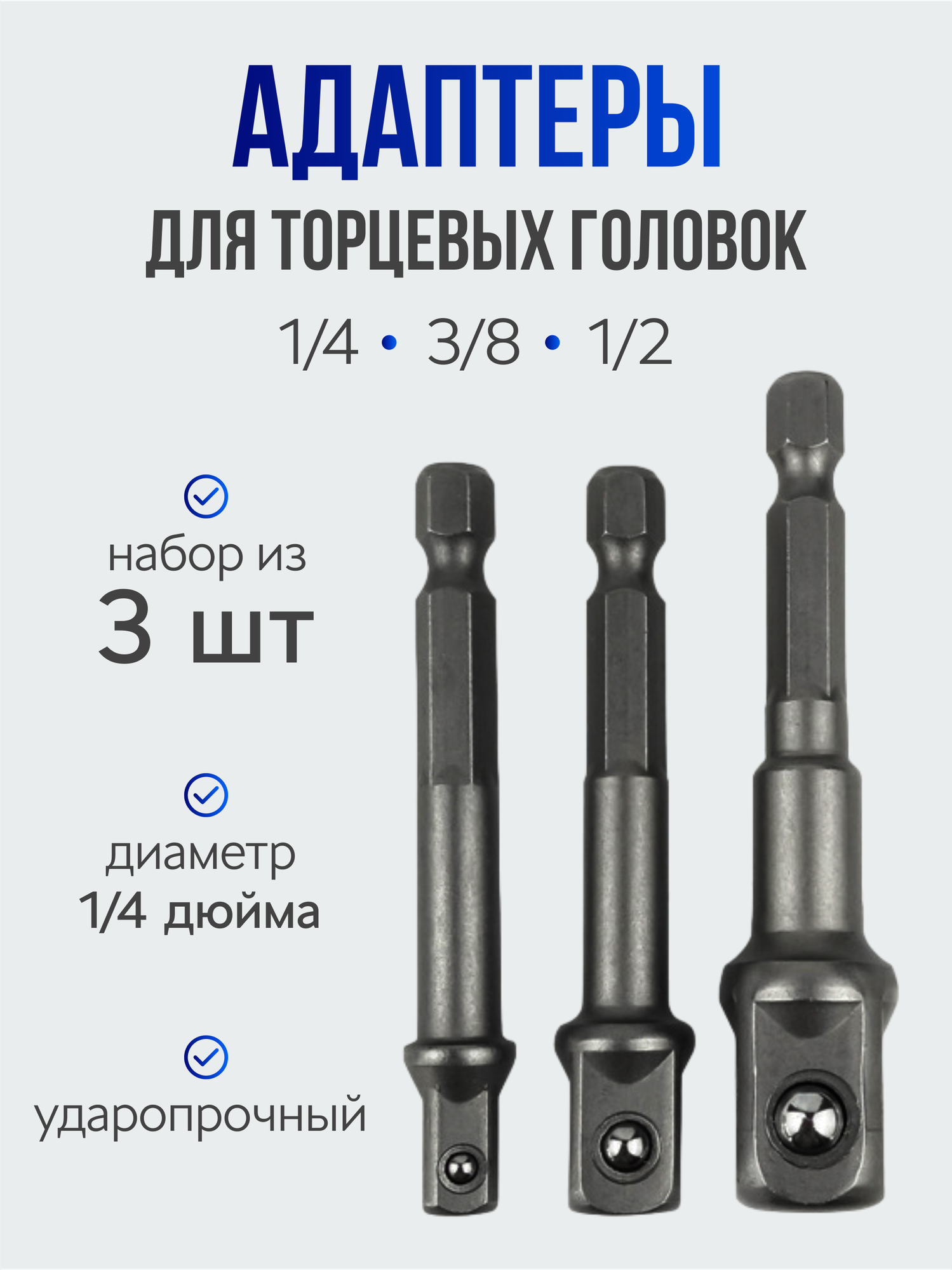 Адаптеры переходники для торцевых головок и бит, набор из 3 штук, цвет - серый интересное: