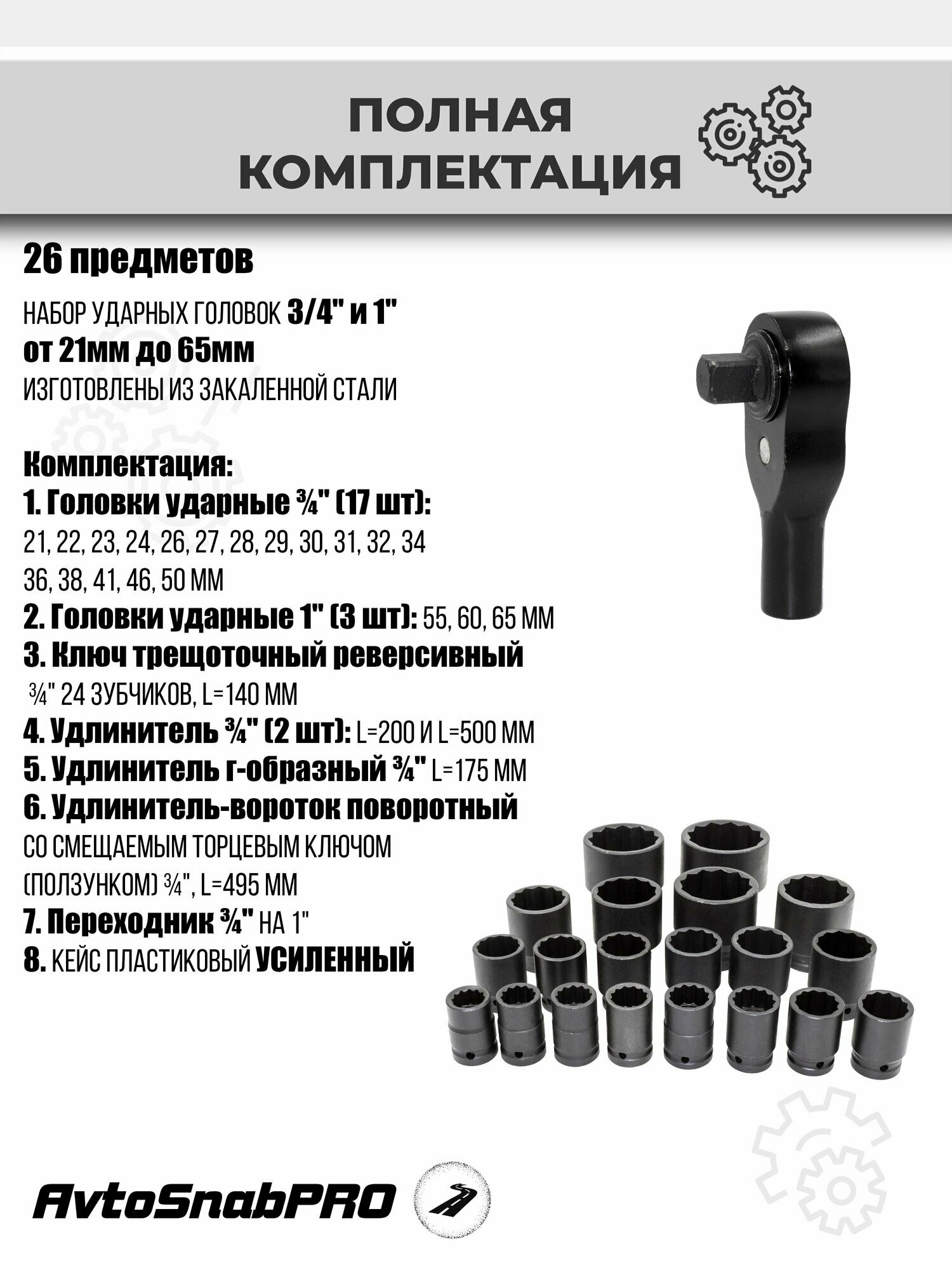 Набор инструментов 26 прeдметов грузовой на 3/4 и 1 (12 граней) интересное: