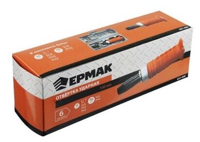 Отвёртка ударная 160мм с красной обрезиненной ручкой, 6 насадок, пластик бокс ермак 651-600 интересное: