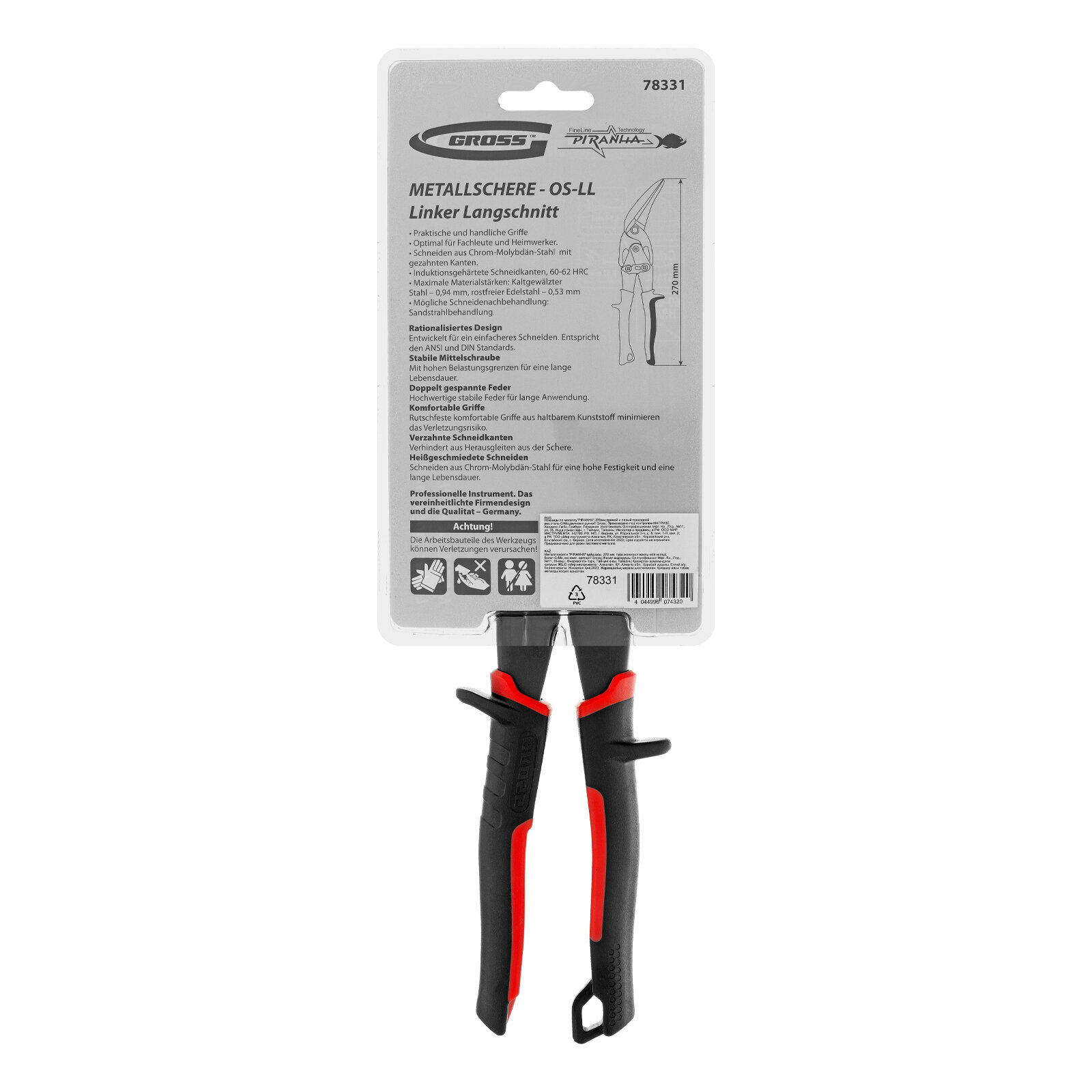 Купить Ножницы по металлу Gross PIRANHA 270мм, прямой и левый проходной рез, сталь-СrMo, двухкомп. рук-ки 78331