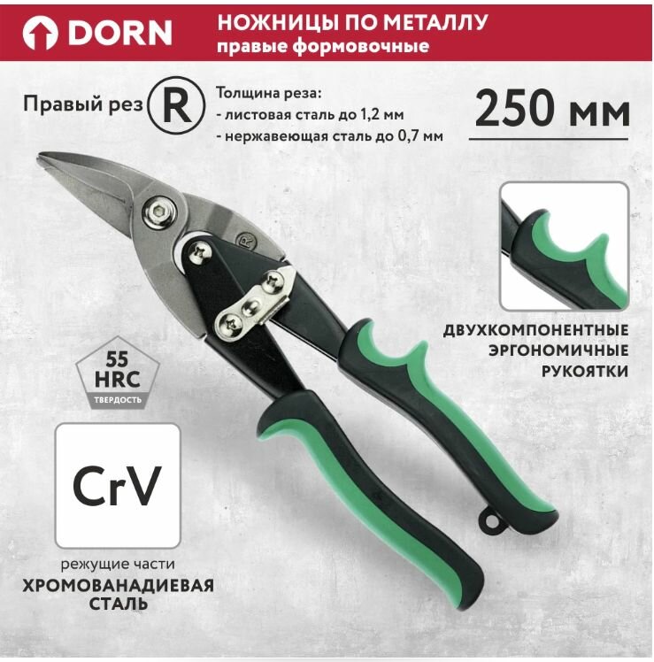 Ножницы по металлу правые DORN 250 мм формовочные, двухкомпонентные рукоятки интересное: