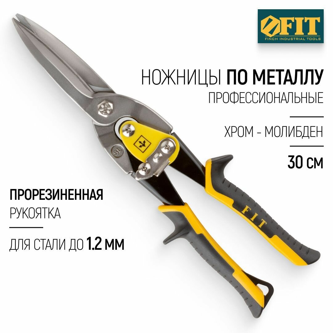 Купить FIT Ножницы по металлу 300 мм прямые усиленные удлиненные для стали до 1,2 мм, CrMo прорезиненные ручки