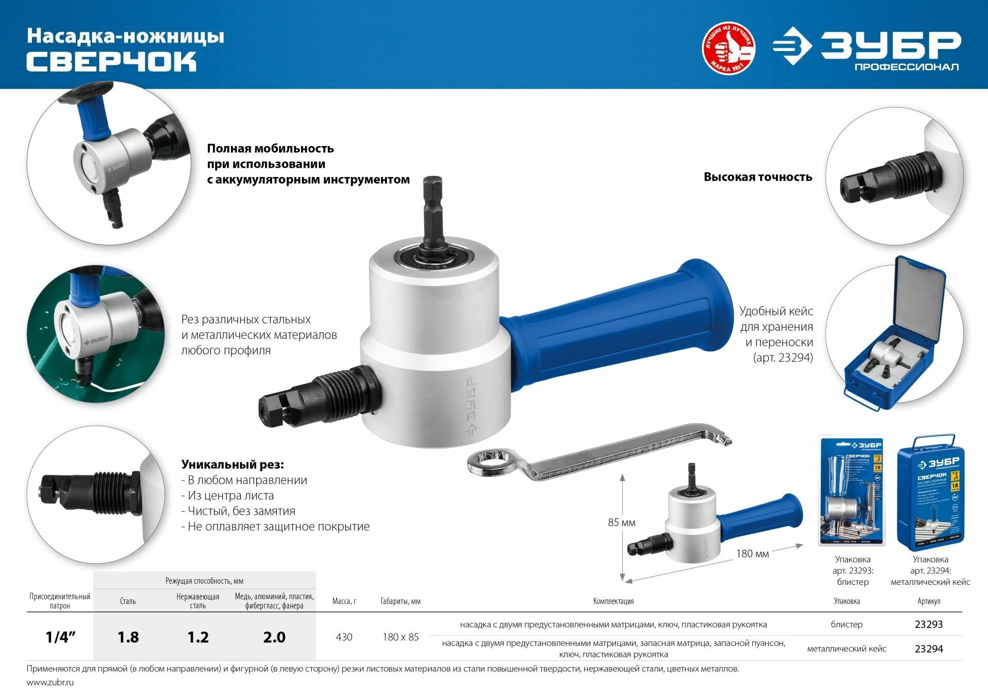 Насадка-ножницы Сверчок для реза листового металла в кейсе ЗУБР 23294 интересное: