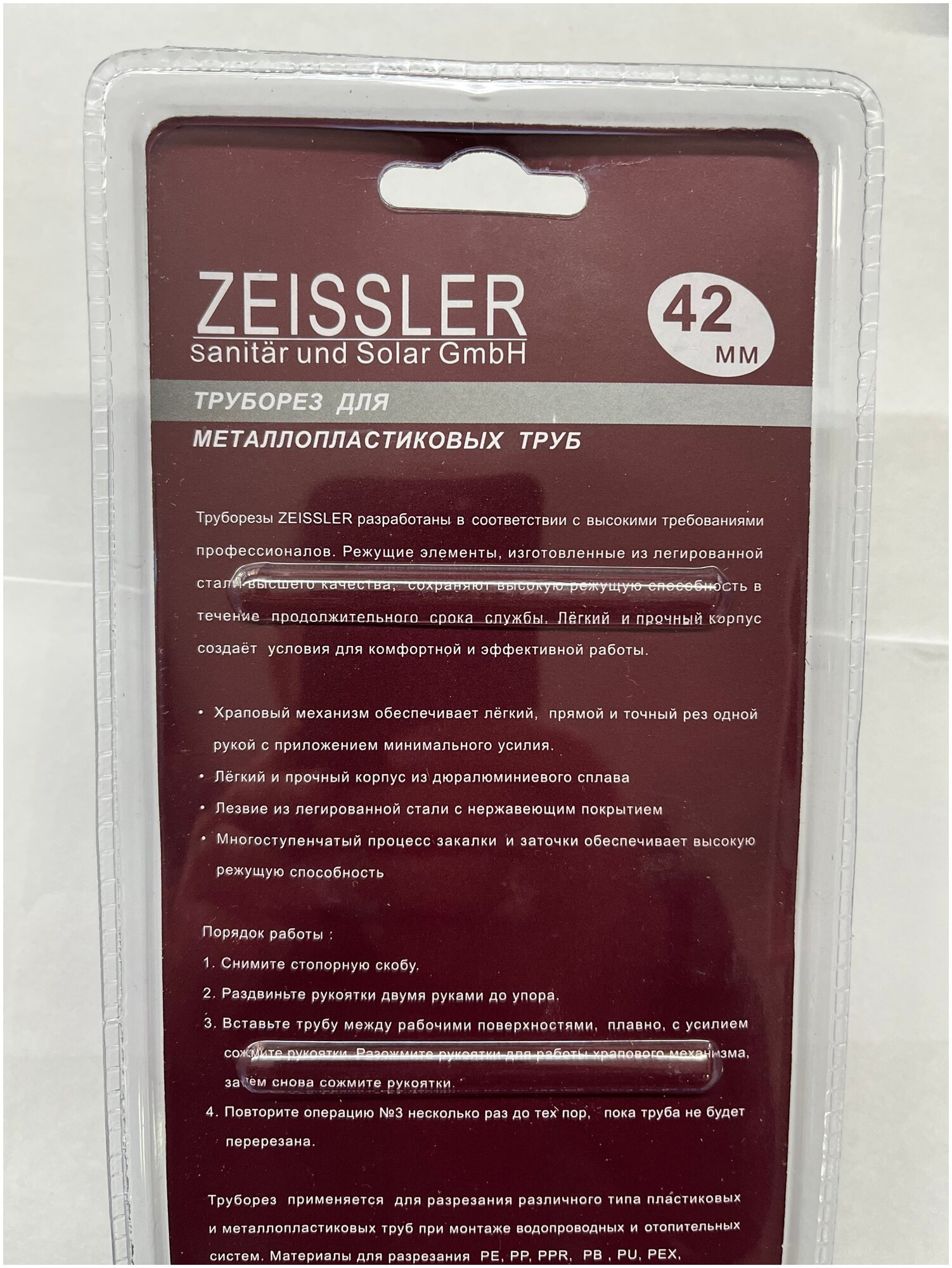 Ножницы для пластиковых труб Zeissler 16-42 мм интересное: