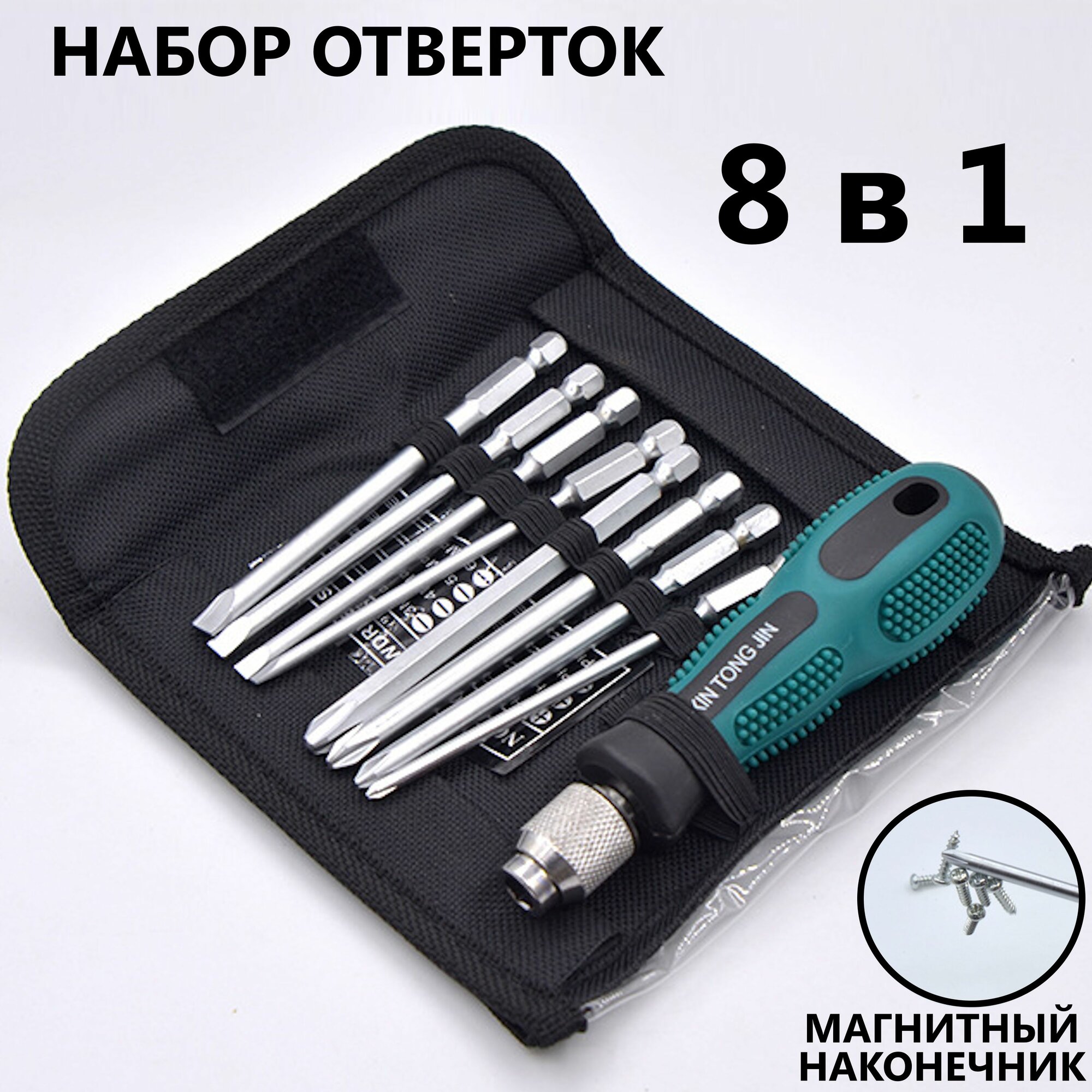 Отвертки набор с насадками для дома с магнитным наконечником в чехле 8 в 1 интересное: