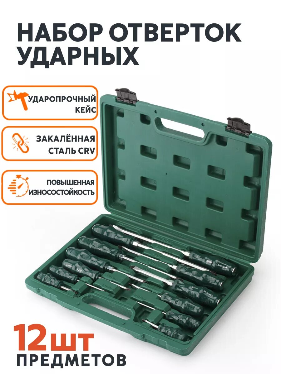 Купить Набор отверток ударных 12 предметов из стали CRV в ударопрочном кейсе
