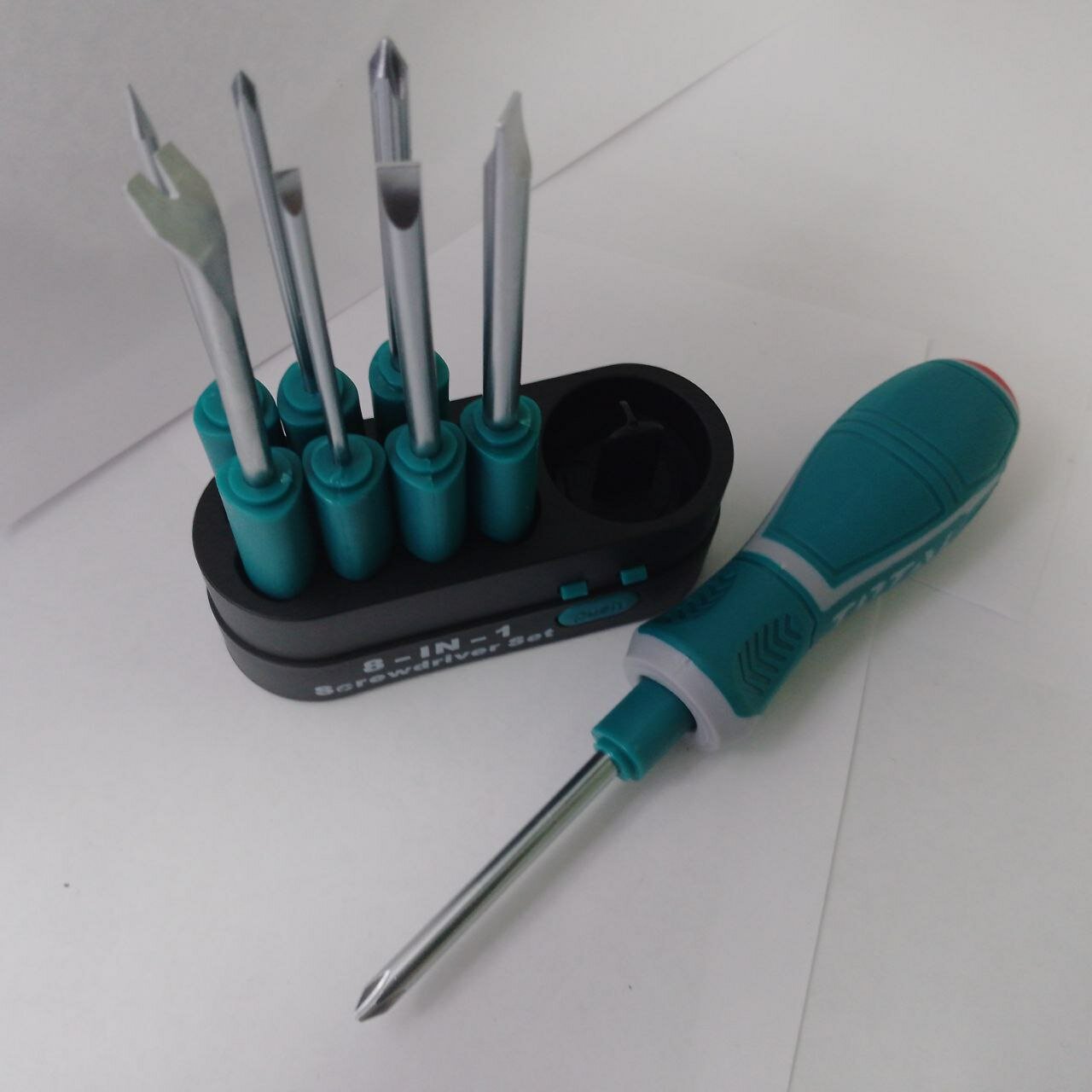 Ниже Вы можете прочитать отзывы на Отвертка TOTAL, 8в1, со сменными битами, магнитный наконечник, в кейсе, бирюзовая, ознакомится с подробными характеристиками, посмотреть интересные обзоры и фотографии на Отвертка TOTAL, 8в1, со сменными битами, магнитный наконечник, в кейсе, бирюзовая.