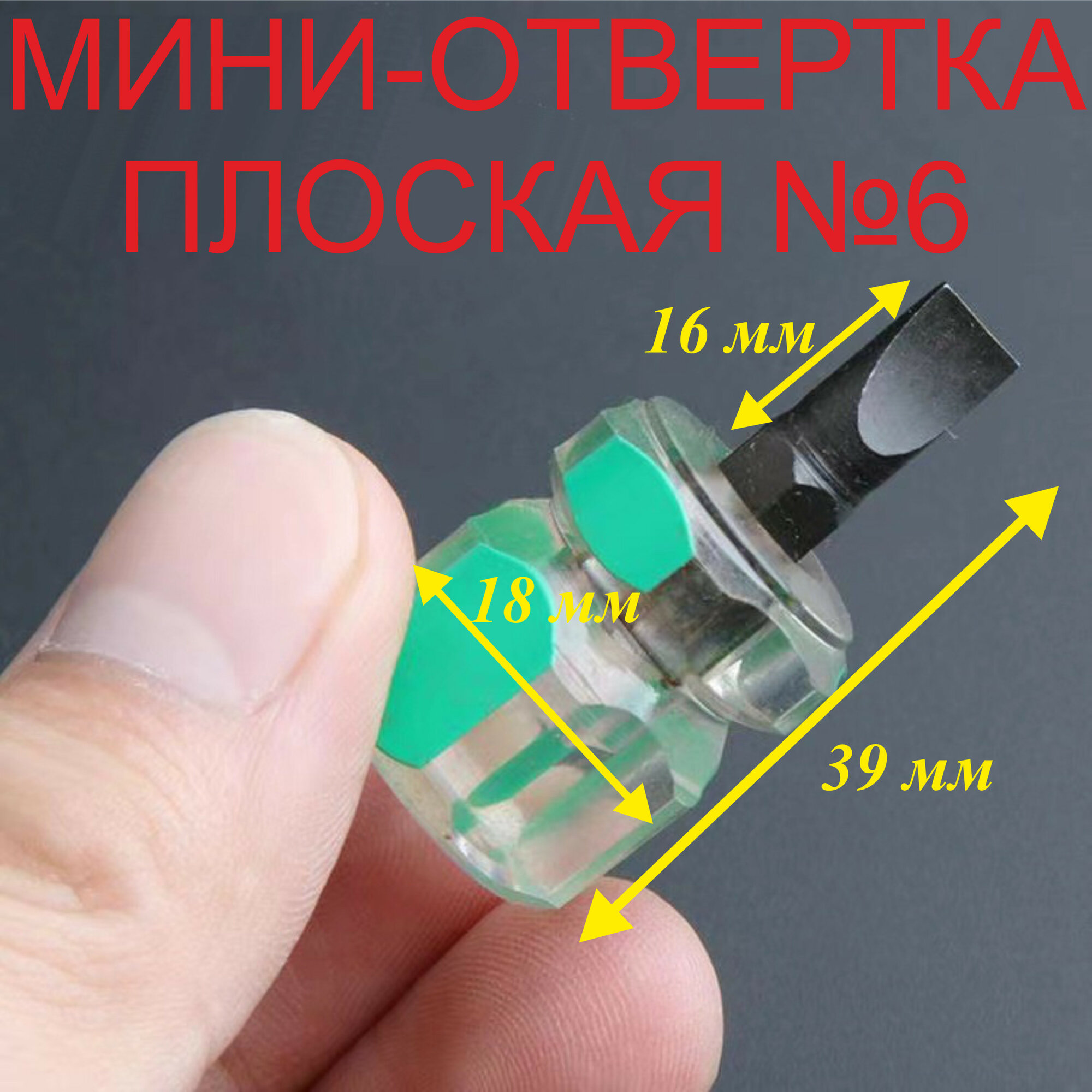 1 шт. Мини-отвертка №6, плоская_диаметр-6мм, длина 39 мм, зеленая интересное:
