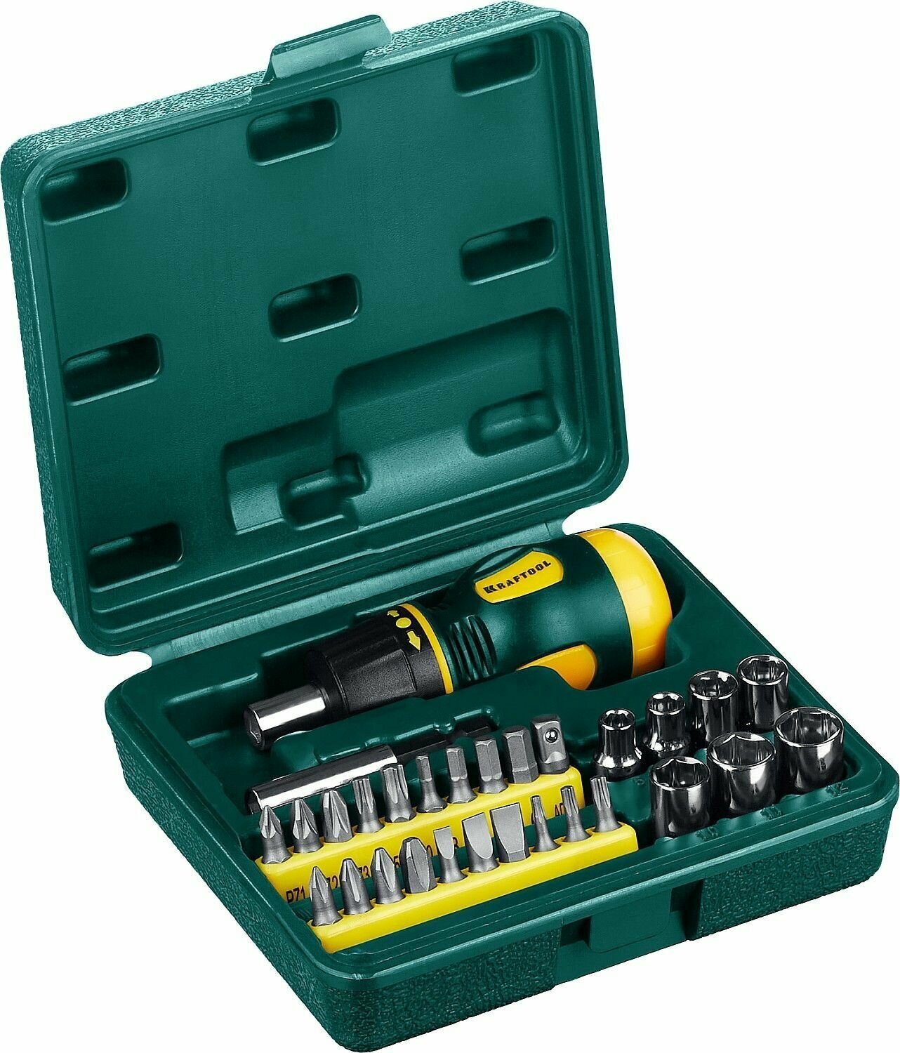 Отвертка реверсивная с насадками 29 шт KRAFTOOL Kompakt-29 набор интересное: