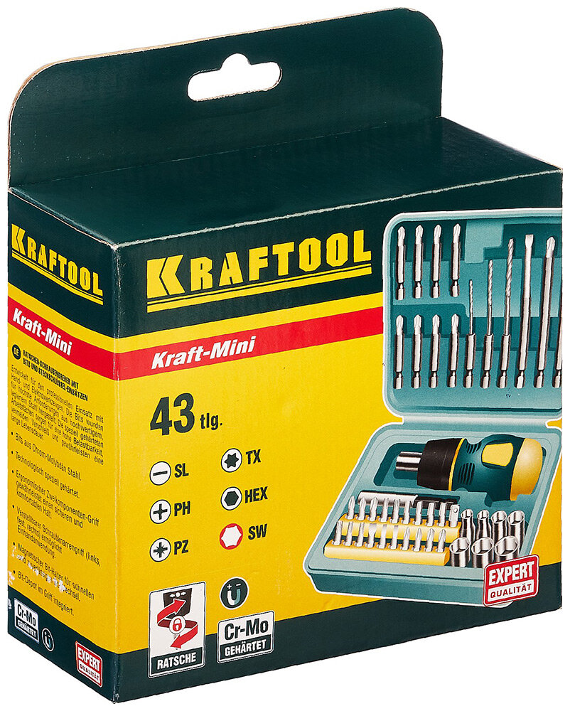 Купить Отвертка реверсивная Kraftool Kompakt-43 с насадками, 43 предм, 25556-H43