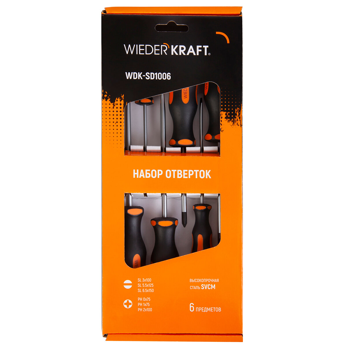 Купить Набор профессиональных отверток WIEDERKRAFT SL+PH 6 предметов WDK-SD1006
