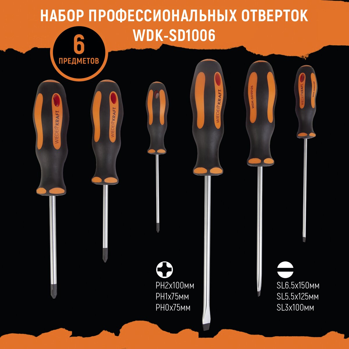 Набор профессиональных отверток WIEDERKRAFT SL+PH 6 предметов WDK-SD1006 интересное: